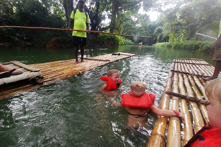 Your excursion begins in Rafter’s Village, a 6-acre (3.6-ha) town with picnic grounds, a full bar, swimming pool, restrooms, and a souvenir shop. When you’re ready, sit back in a relaxing 2-seat bamboo raft and enjoy a tropical rum punch cocktail as you set off down the Martha Brae.