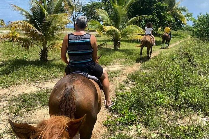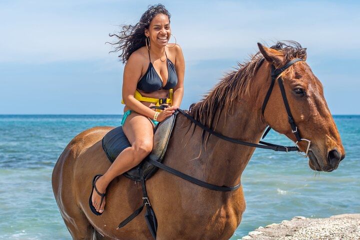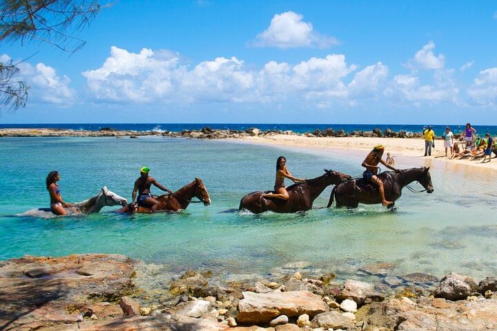 Next, saddle up for a scenic beach horseback ride along the pristine shores of the Caribbean. Feel the gentle breeze on your face as you trot along the sandy beaches, taking in panoramic views of the turquoise waters. After your horseback ride, head to a secluded north coast beach for a refreshing swim and bareback horseback ride in the crystal-clear Caribbean Sea.
